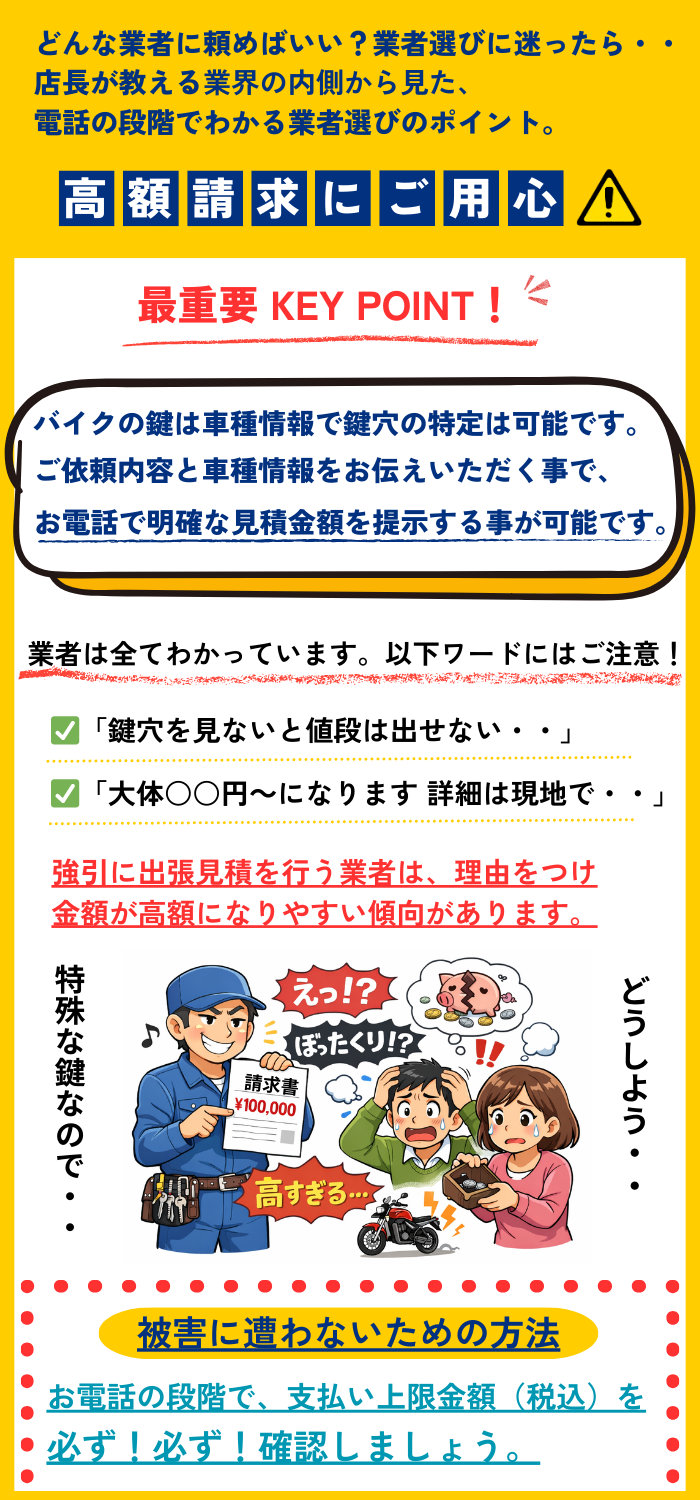 ※そのバイク以外のカギや異物混入の場合は対応不可